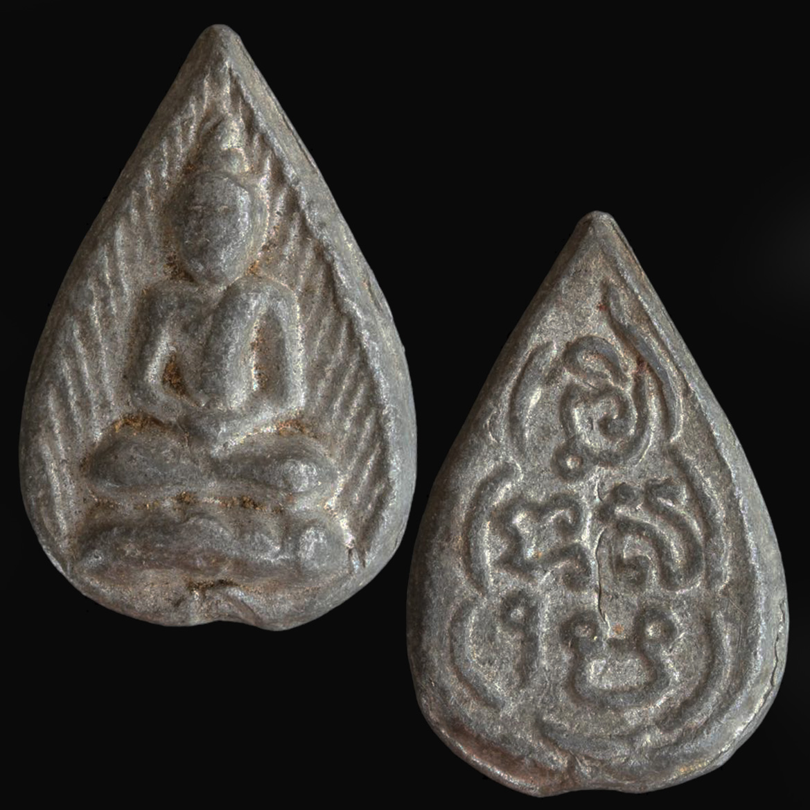 พระกลีบบัวข้างรัศมีหลังยันต์สี่ ปู่บุญ วัดกลางฯ เนื้อขี้นกเขาเป้า