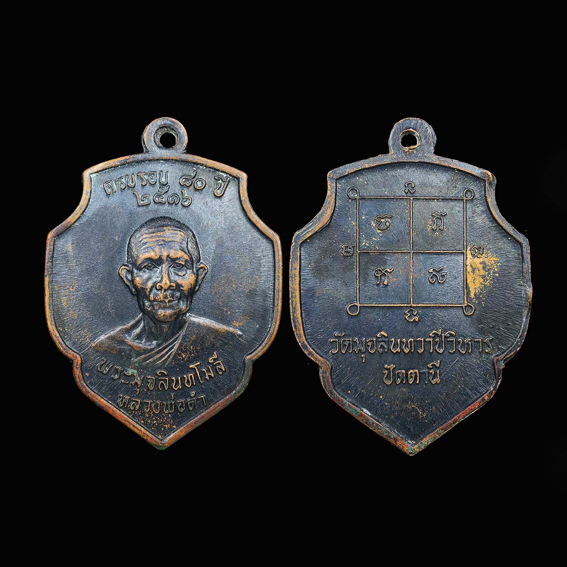 เหรียญหลวงพ่อดำ วัดตุยง รุ่นแรก ปี 2516 ทองแดงรมดำ