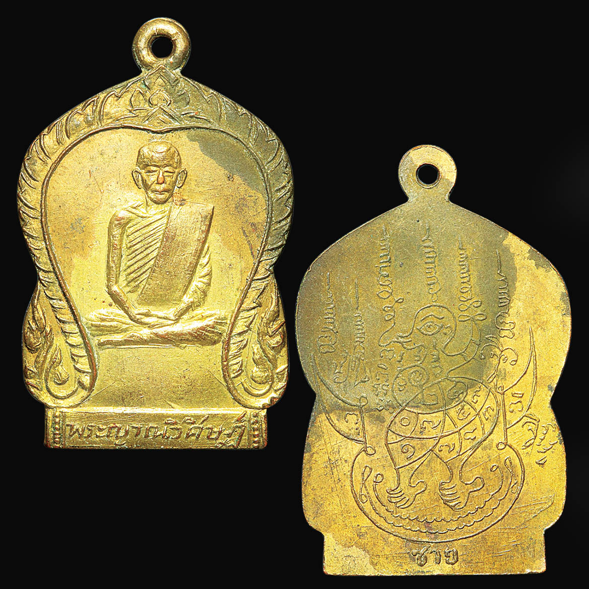 เหรียญเสมาพระอาจารย์สิงห์ วัดป่าสาละวัน ปี 2500 ทองแดงกะหลั่่ยทอง
