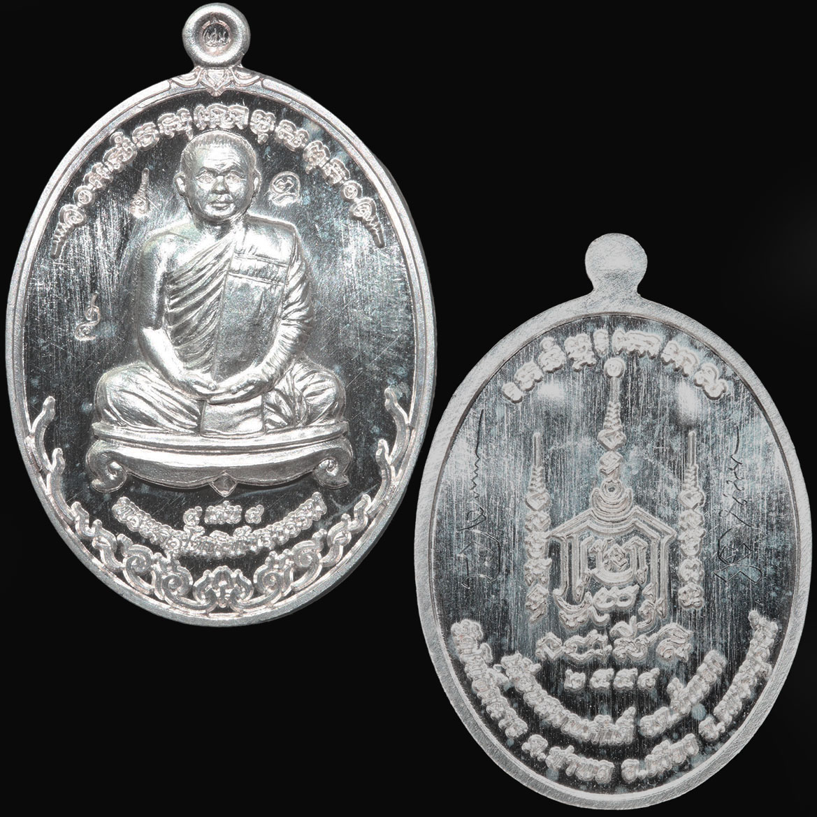 เหรียญเลื่อนสมณศักดิ์ อาจารย์ เด่น วัดโพธิ์กลาง เนื้อเงิน เลข ๕ มีจาร