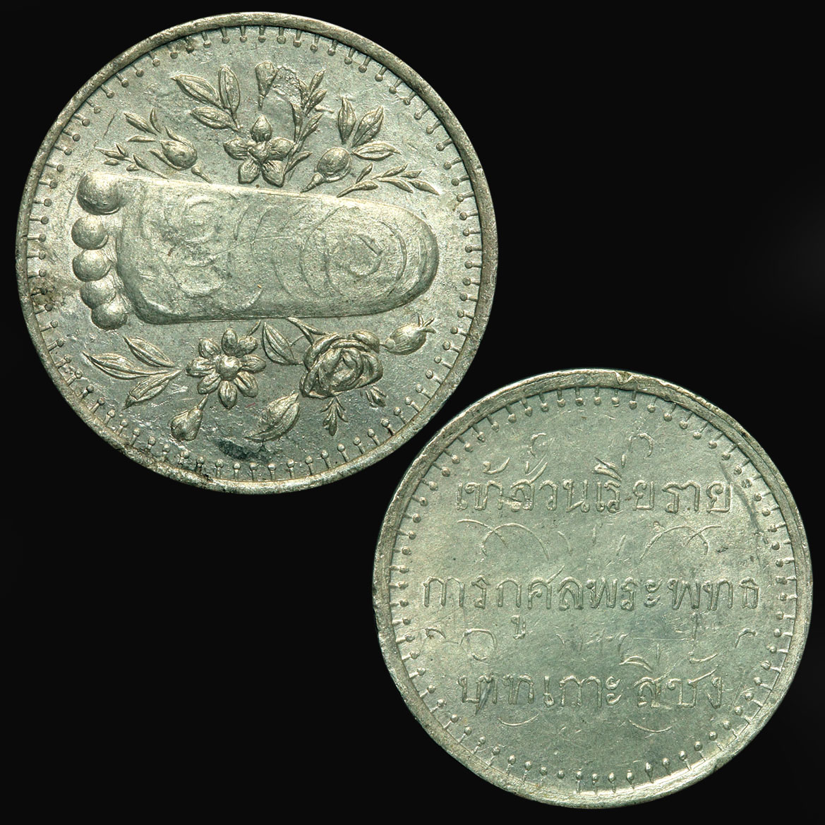เหรียญพระพุทธบาทเกาะสีชัง จ.ชลบุรี เหตุที่สร้างพระอุปราชแห่งอินเดีย ได้นำรอยพระพุทธบาท (จำลอง) มาจากเมืองพุทคยา นำถวายพระบาทสมเด็จพระจุลจอมเกล้าเจ้าอยู่หัวรัชกาลที่ ๕ และทรงอันเชิญพระพุทธบาทจำลองไปประดิษฐาน ณ เกาะสีชัง ในกาลครั้งนั้นพระเจ้าอยู่หัวรัชกาลที่ ๕ ทรงโปรดเกล้าฯให้ประชาชนมีส่วนร่วมพระราชกุศล โดยถวายเงิน และได้สร้างเหรียญพระพุทธบาทเกาะสีชังเป็นที่ระลึกในงาน และโปรดเกล้าฯให้ท่านเจ้ามา วัดสามปลื้ม (จักรวรรดิ) เป็นประธานในพิธีในการสร้างมณฑปประดิษฐานรอยพระพุทธบาทบนเกาะสีชัง  หลังจากนั้นให้มีการเฉลิมฉลองสมโภชระหว่างวันที่ 27-30 เมษายน พ.ศ. 2435
