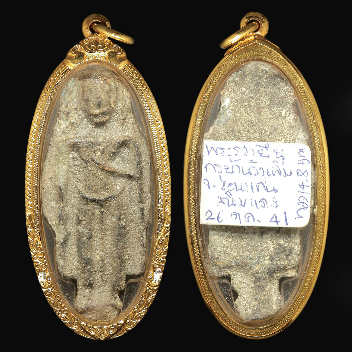 พระร่วงยืน กรุวังเพิ่ม จังหวัดขอนแก่น เนื้อชินสนิมแดง พร้องเลี่ยมทอง
