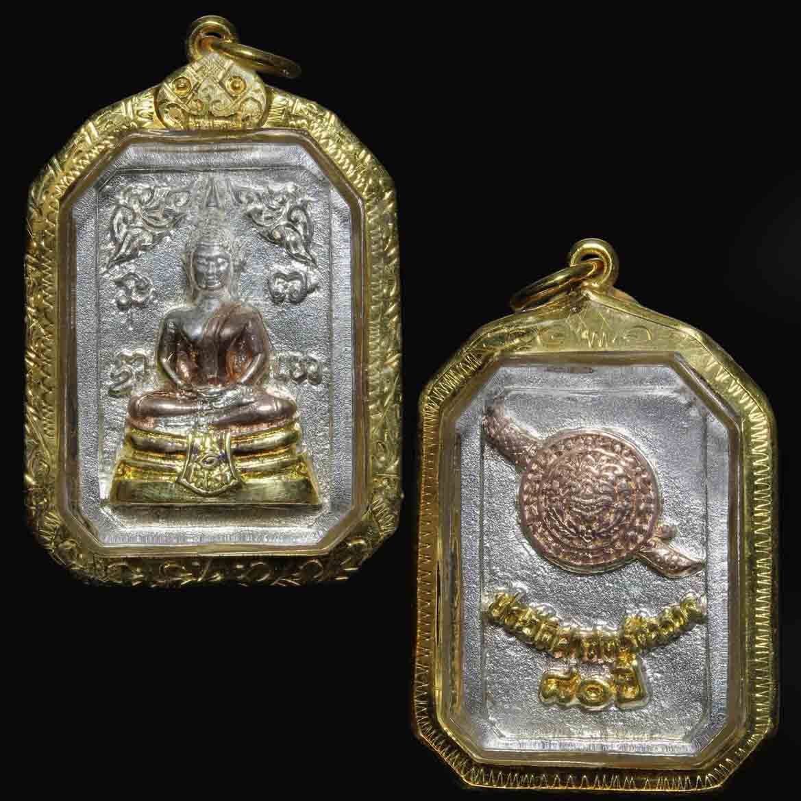 เหรียญหลวงพ่อโสธร รุ่น กรมตำรวจ เนื้อเงินสามกษัตริย์ ปี 38 เลี่ยมทอง