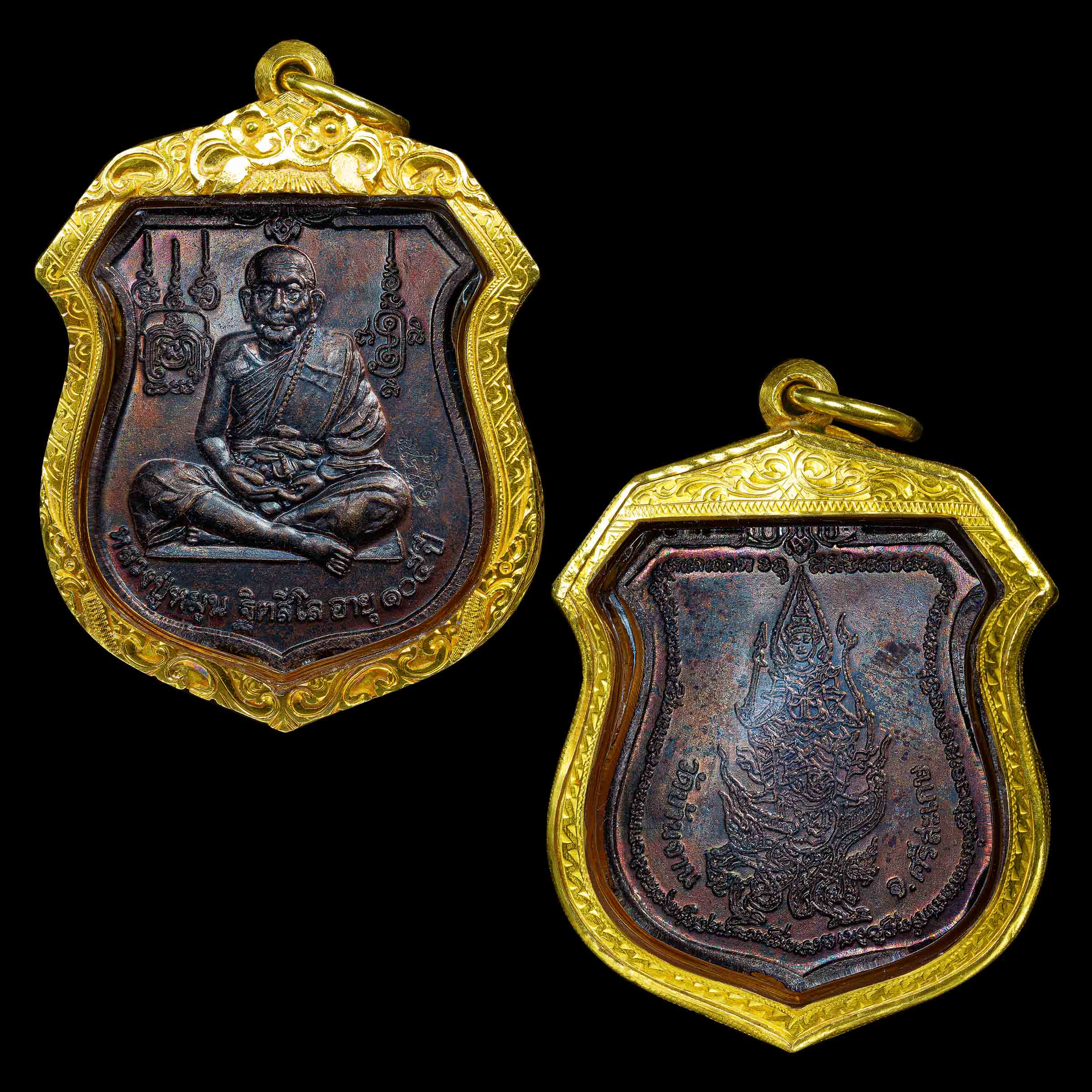 เหรียญนารายณ์ทรงครุฑ หลวงปู่หมุน ปี 42 ทองแดง เลี่ยมทองประมาณ 13 g.