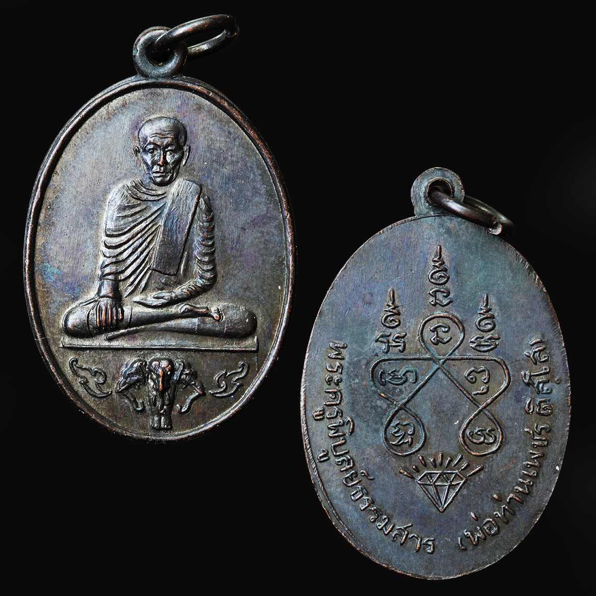 เหรียญหลวงพ่อเพชร รุ่นแรกหัวช้าง ปี 05 ทองแดงรมดำ