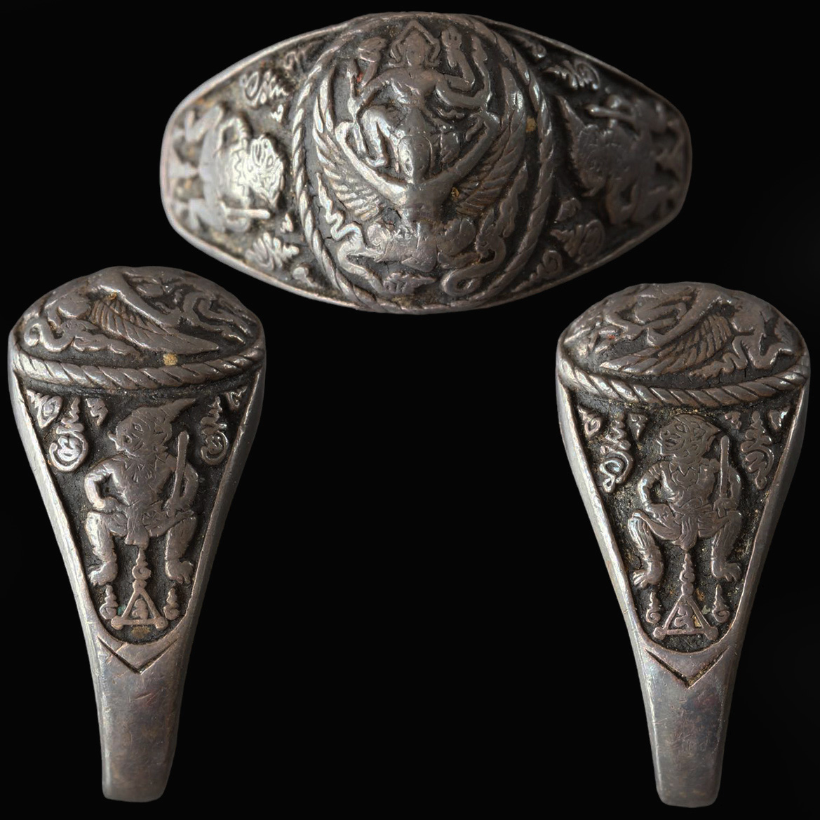 แหวนนารายณ์ทรงครุฑ หลวงพ่อสมภพ วัดสาลีโข เนื้อเงิน ปี 25
