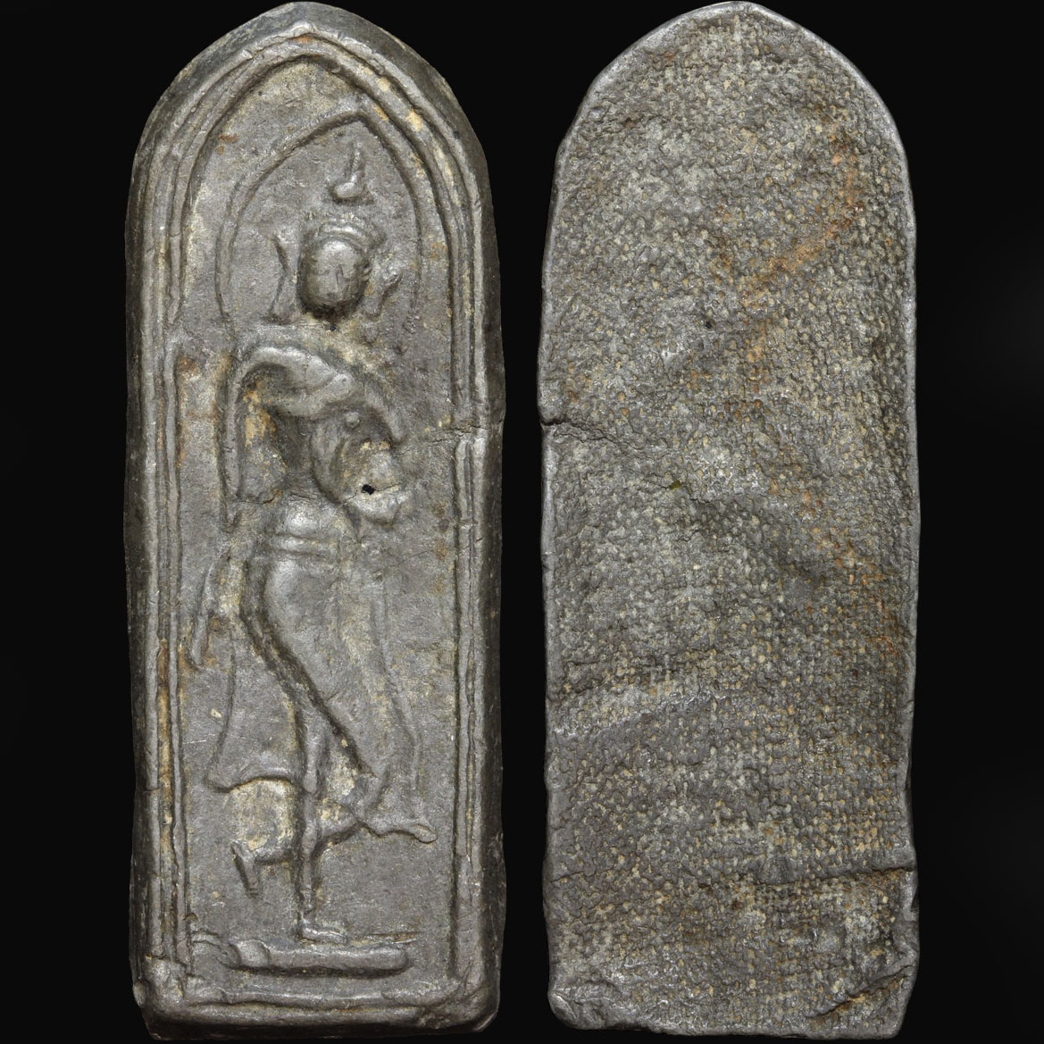 พระลีลาขาไขว้ หลังลายผ้า กรุพิษณุโลก เนื้อชิน หายาก