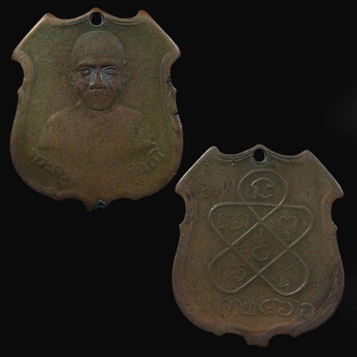 เหรียญหลวงพ่อแจ่ม วัดโชค ดำเนินสะดวก ราชบุรี รุ่นแรก ปี2466 เนื้อทองแดง